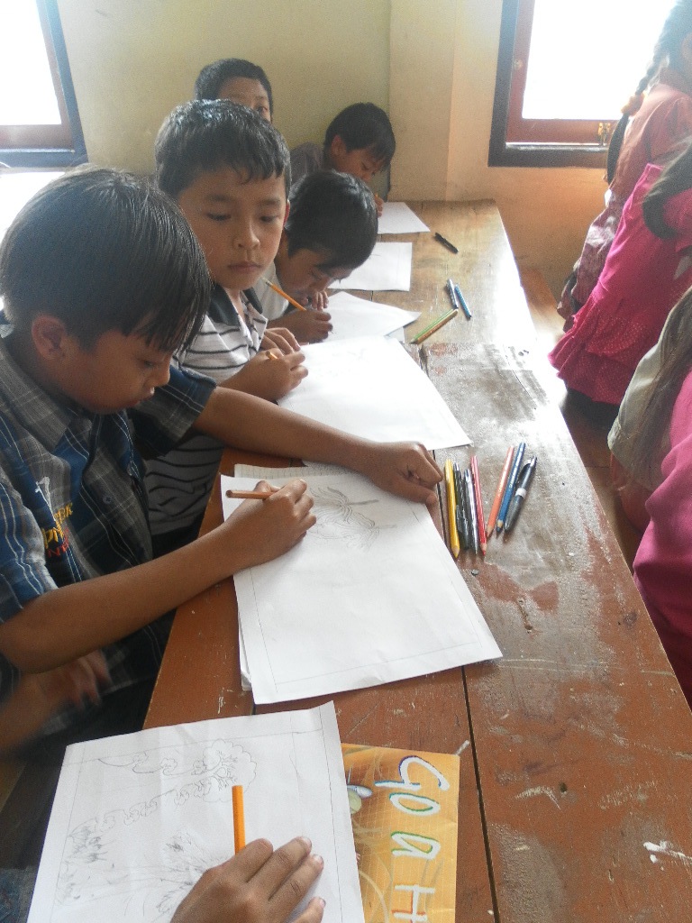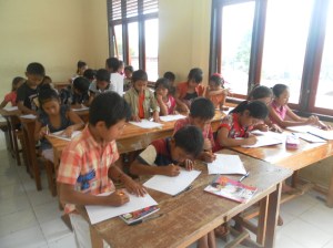 The children had such a great time designing, titling, and thinking up their artwork. We had primarily been working on designing a proper curriculum and formulating effective teaching methods for the area. Now that we have begun assisting in lesson plans- I couldn’t be happier. The local Balinese teachers are doing a wonderful job in offering a foundation for learning this complex language.
