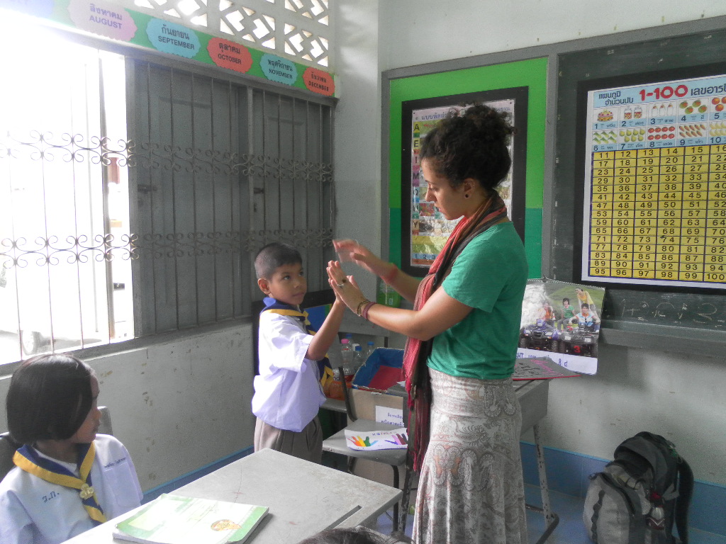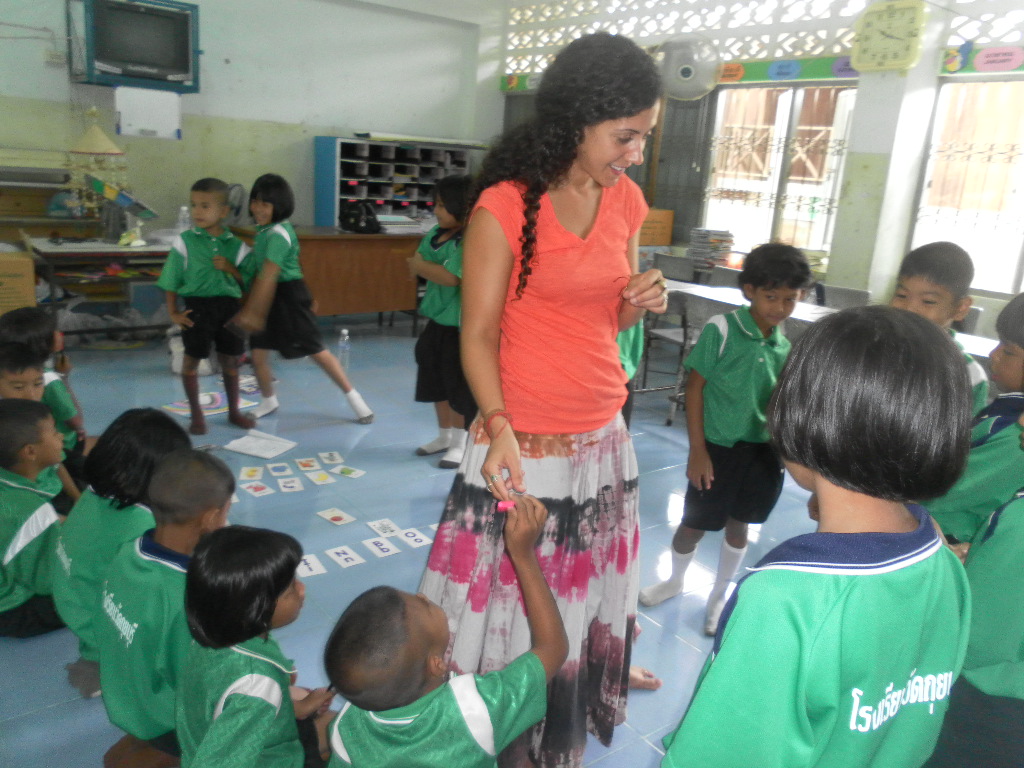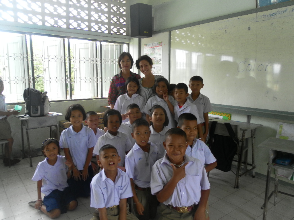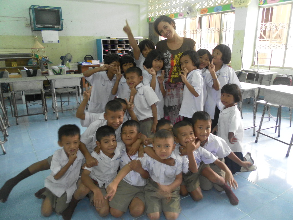 My students really want to learn from me and it is really rewarding. Right now I am teaching 5 classes, Monday-Friday, Ages 4-9 — sometimes after I am done teaching I stay with the young kids just to watch them at nap time. It is probably the most adorable thing I’ve ever witnessed in my life. The energy and enthusiasm in these kids is remarkable. Walking through the school I am overwhelmed by tiny Thai voices calling: “Kru (teacher) Gina! Sa-watdii Ka! (Good Day)”. In English at the beginning and end of every class they say “Thank you Teacher” and from day one I fell in love…