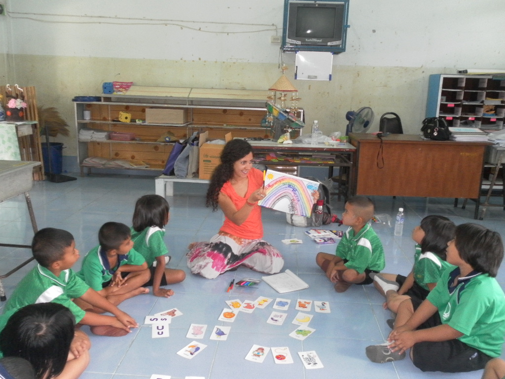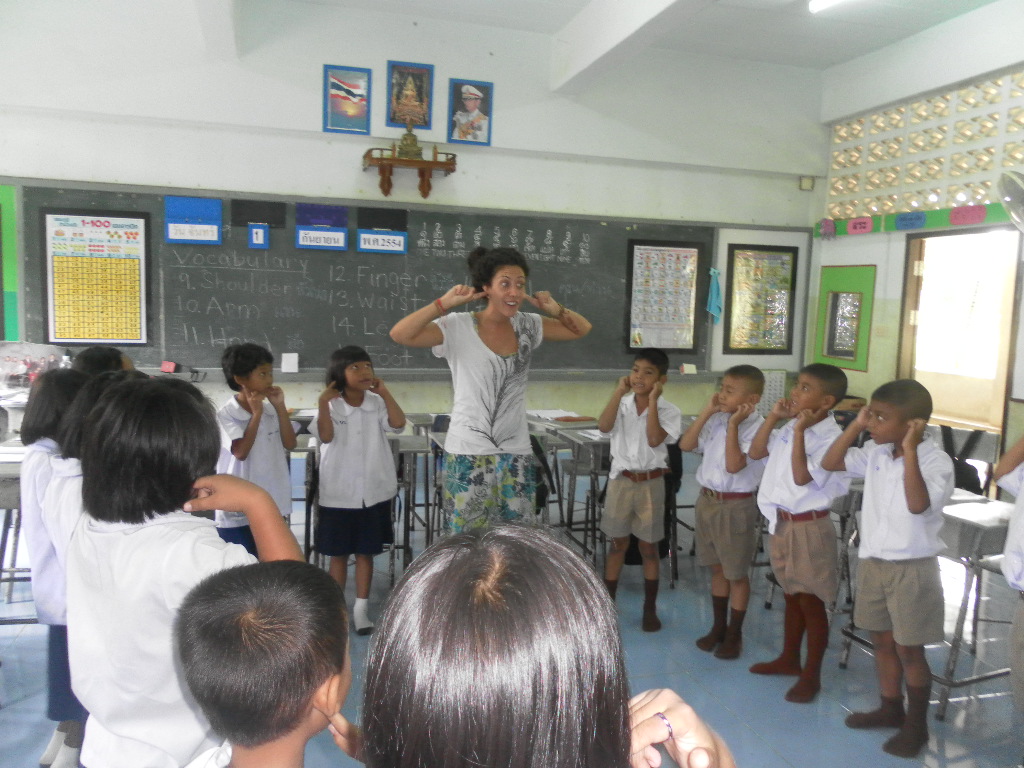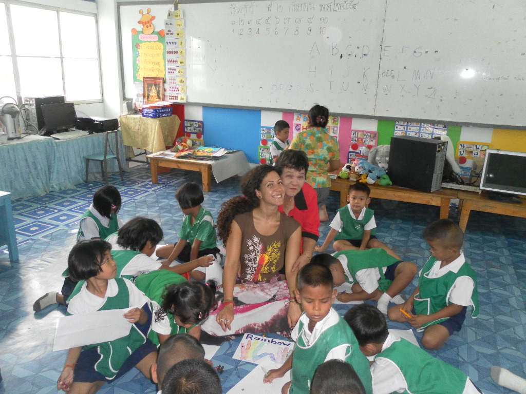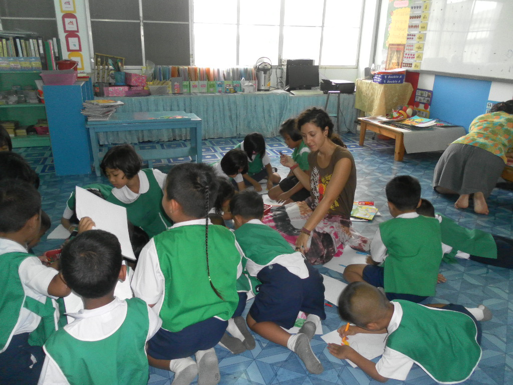 My students really want to learn from me and it is really rewarding. Right now I am teaching 5 classes, Monday-Friday, Ages 4-9 — sometimes after I am done teaching I stay with the young kids just to watch them at nap time. It is probably the most adorable thing I’ve ever witnessed in my life. The energy and enthusiasm in these kids is remarkable. Walking through the school I am overwhelmed by tiny Thai voices calling: “Kru (teacher) Gina! Sa-watdii Ka! (Good Day)”. In English at the beginning and end of every class they say “Thank you Teacher” and from day one I fell in love…
