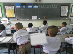 The teachers have been so accommodating: offering whatever supplies I need, photocopying material, assisting when language becomes an issue and literally filling my tummy with delicious food! Every morning teachers bring me yogurt, fruit, water, or some form of Thai goodness! Lunch is always offered to me and even when I’m not hungry I end up eating anyways! Giving food is a sign of good merit here and, at the school it is a kind display of appreciation.