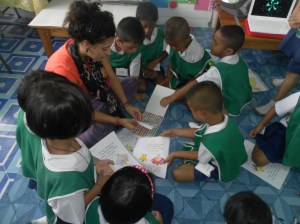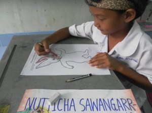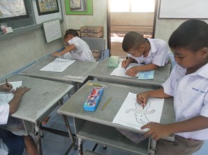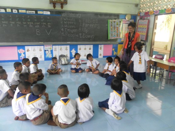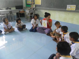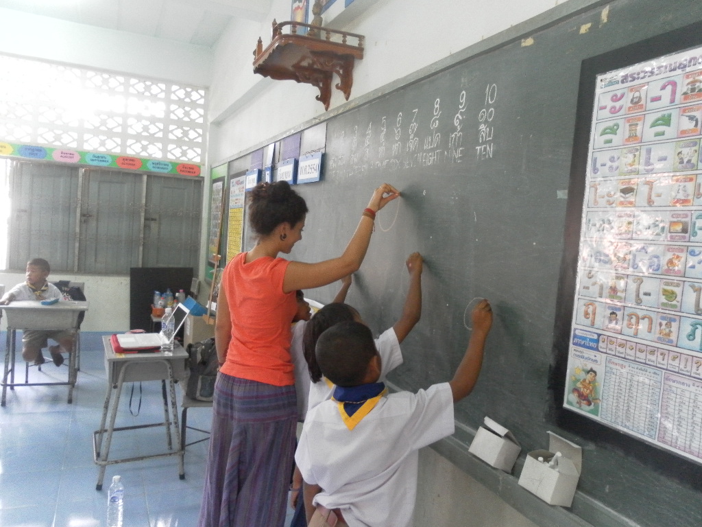 Most of them know the English Alphabet however, their pronunciation is an issue. They have difficulty recognizing individual letters without going through the entire thing in their head. So I reinforce the letters by getting them writing, speaking, and visualizing them properly. I can see the real advantage in having me here when I see that many of the teachers are basically taking my class with their students— they sit in the back of the class and take notes to familiarize themselves with the way things sound. On that note, many of the sounds that we use are not a part of Thai Language so their little mouths aren’t familiar with moving in ways the English language requires. I don’t always have time to fix it all but, I’ve been giving a lot of individual attention and trying my best to point out the things I feel will make a huge difference.