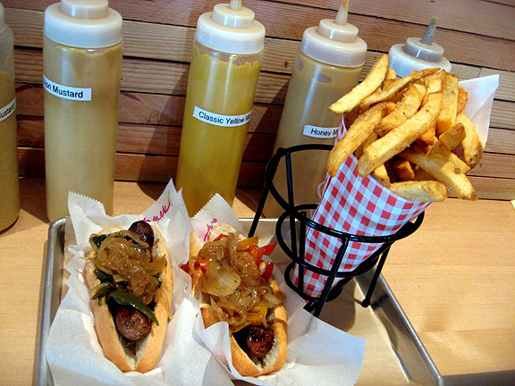 Gotta Try: Apple Sage or Chipotle Vegetarian Sausage & fries w/ Sundried Tomato Aoli (GREAT SCENE AND UNIQUE FOOD)
