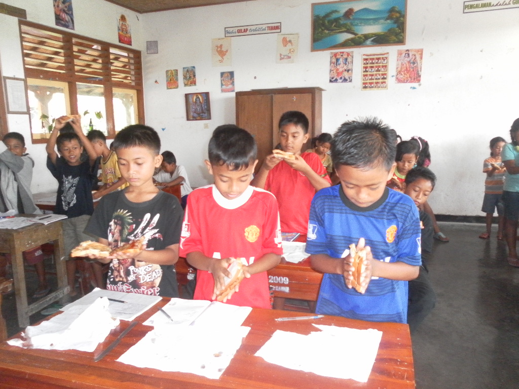 My work with the kids at the schools in Pejeng Kawan, keeps me busy creating new lesson plans for the classroom. Upon realizing that most of these 200+ children had no idea what a sandwich was, I decided to formulate a Peanut Butter and Jelly Sandwich lesson- which was a hit!